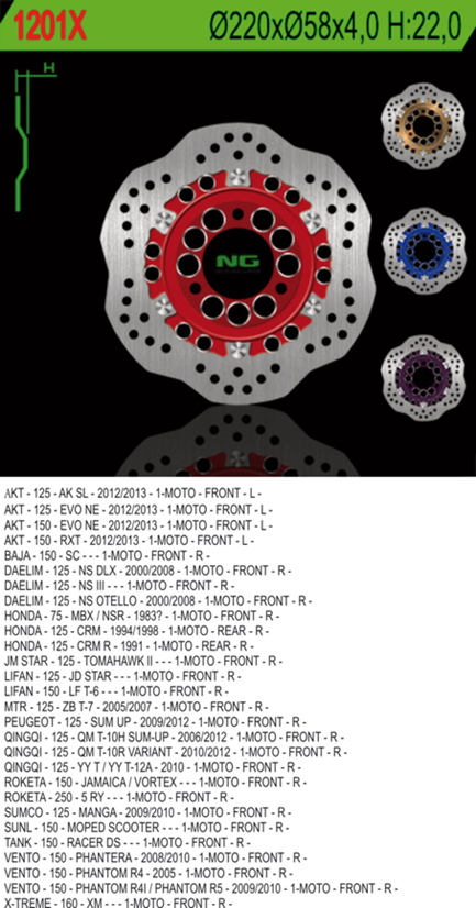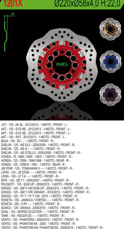 NG Tarcza Hamulcowa Przód Daelim/Peugeot, Tył Honda CRM 125 (Wave) 1991-2012